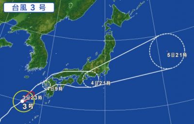 4日の午前中には九州の長崎に上陸している台風3号。